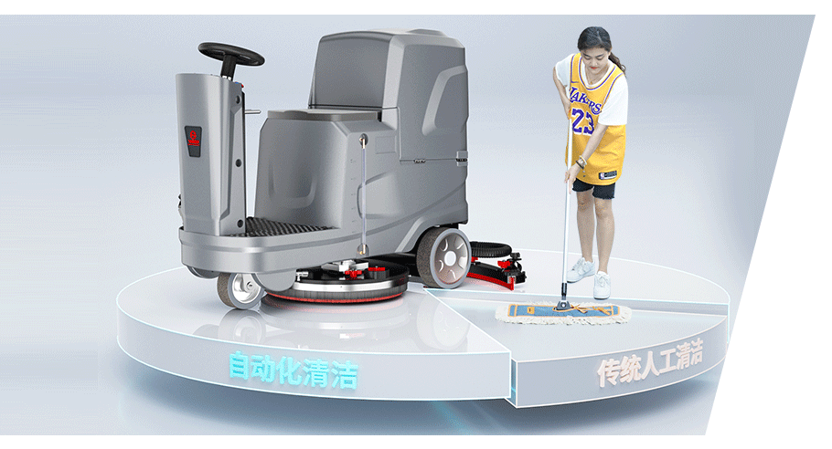 揚子洗地機YZ-X6,硬地毛刷強力清除頑固污垢,橡膠防滑輪加厚防滑不易損壞,智能控制面板一鍵操作輕松上手,防滑站臺保護工作人員安全。
