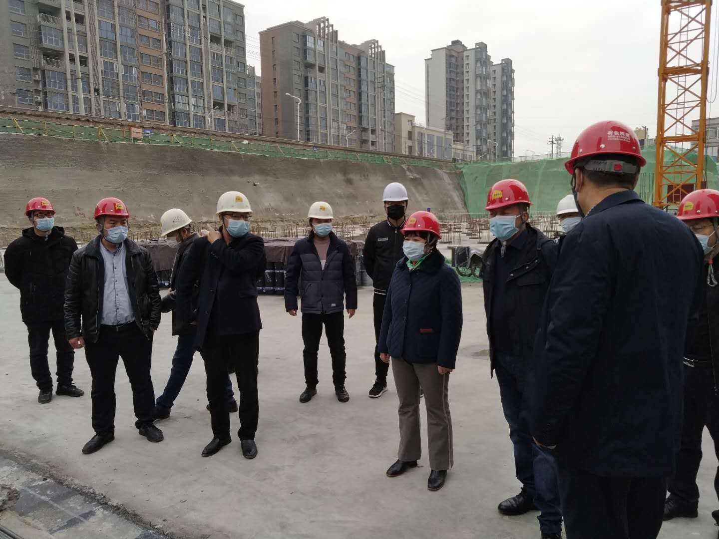盧曉嵐董事長一行了解有色置業相關防疫復工工作,詳細檢查辦公區、生活區、售樓部、有色鉑金城小區防疫措施。隨后深入有色鉑金城項目建設施工現場對相關情況進行了督導檢查,并對施工人員進行了慰問,認真聽取當班人員工作匯報,翻看值班記錄,對完善工地應急預案,施工現場來訪人員管理具體工作提出意見建議,希望各單位高度重視,一手抓疫情防控,一手抓復工復產,充分認識疫情防控工作的嚴峻性、緊迫性、艱巨性和復雜性,在保障安全生產的情況下,相互借鑒好經驗和好做法,有序復工,抓好工期,抓好機遇,既要切實保障職工生命安全和身體健康,也要力爭完成年度目標任務。